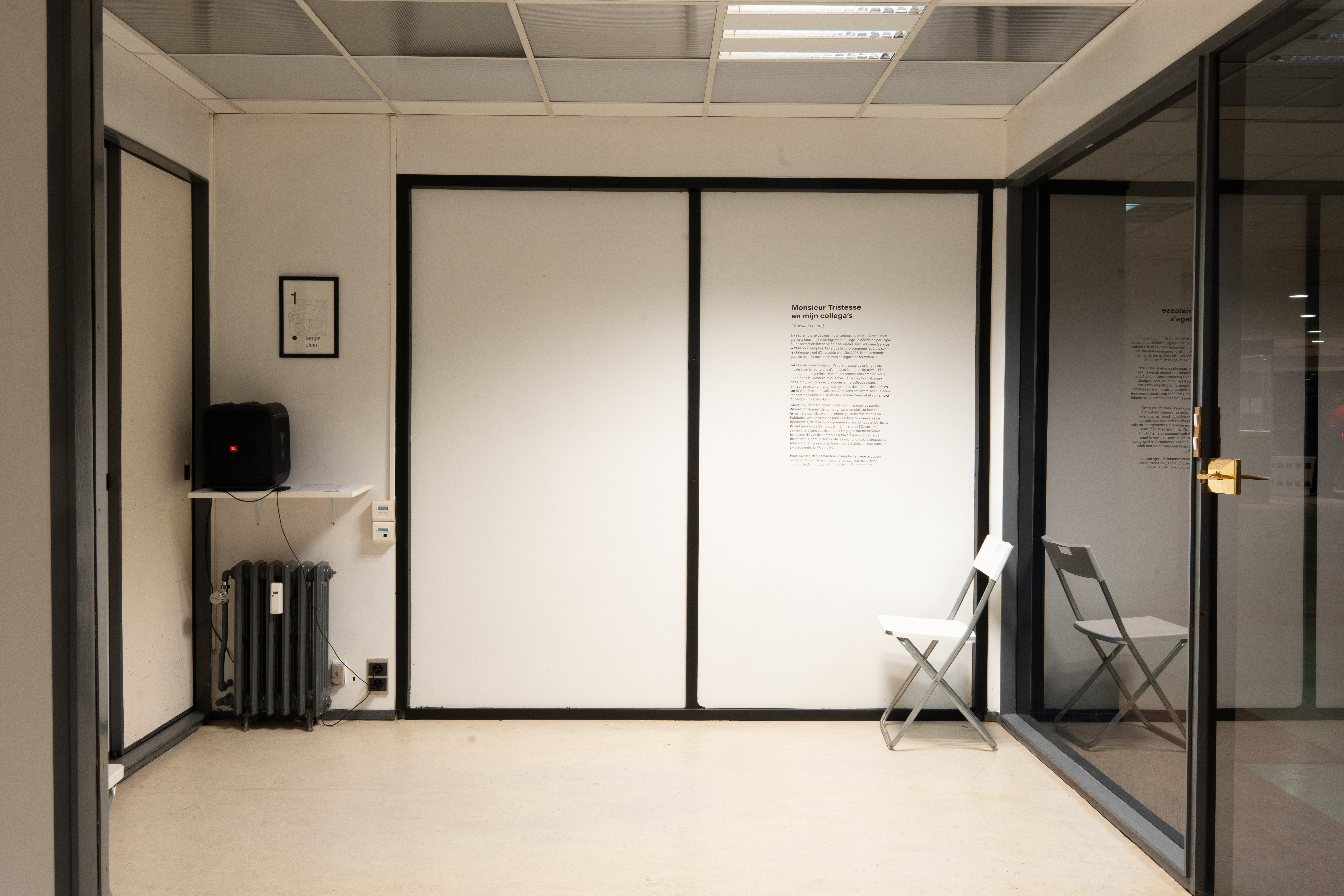 «Monsieur Tristesse en mijn collega’s» mélange les paroles de mes “collègues” de formation sans emploi, sur leur vie, la manière dont ils vivent ce chômage, leurs frustrations ou habitudes, avec des textes prélevés dans nos exercices de néerlandais, dans la loi-programme sur le chômage et d’articles du net (annonces d’emploi, d’intérim, site de l’Onem, etc.).